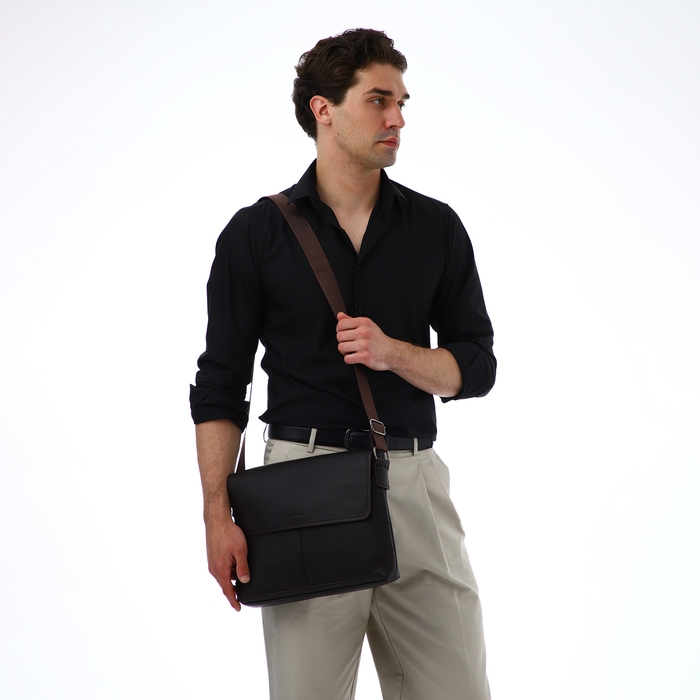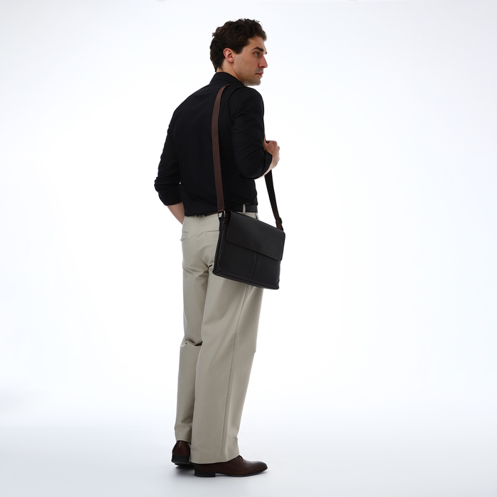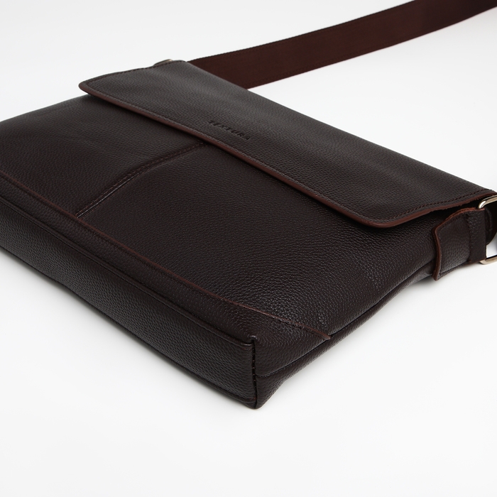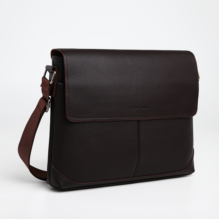 Сумка мужская деловая TEXTURA, 2 наружных кармана, цвет коричневый