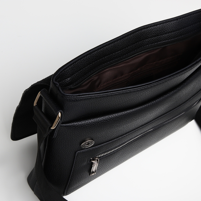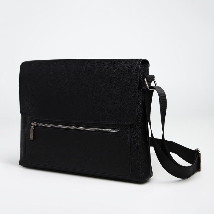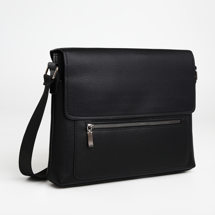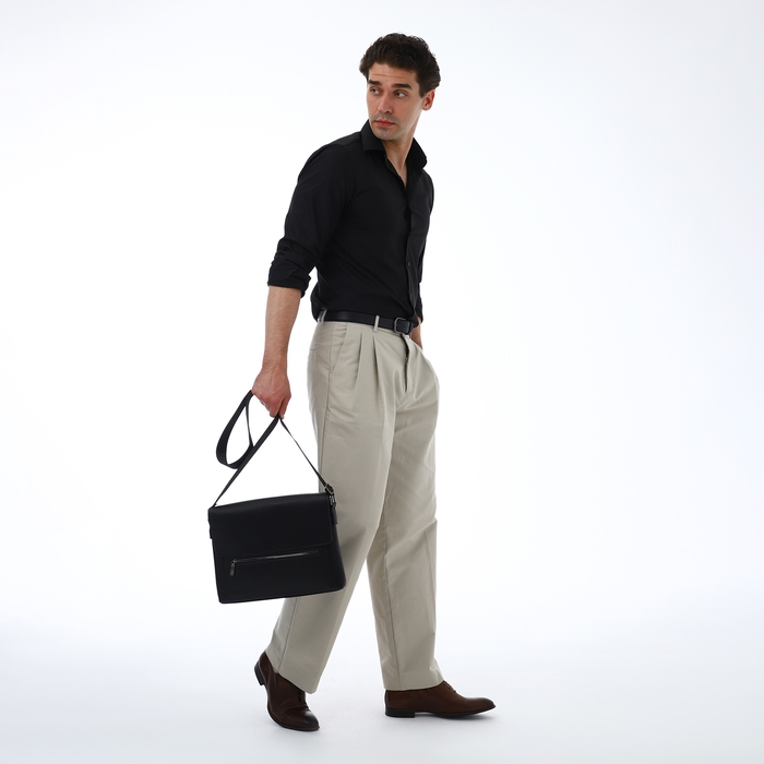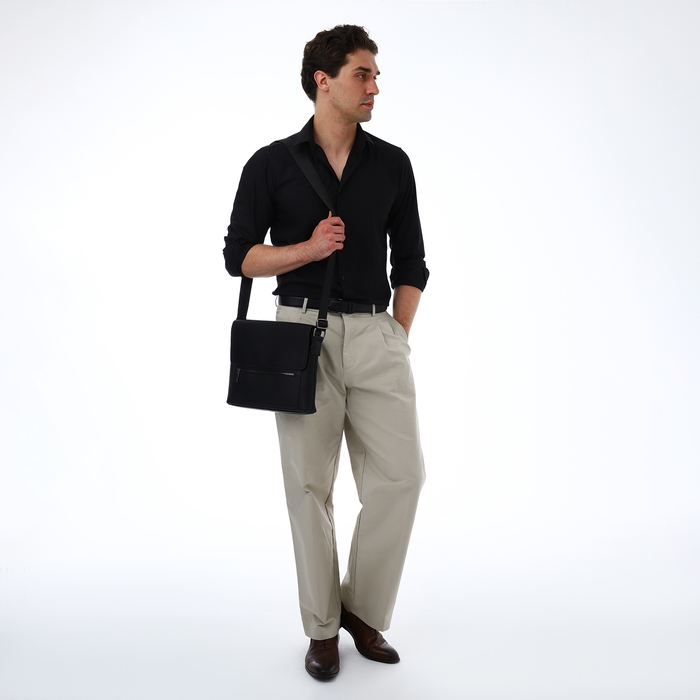 Сумка мужская деловая TEXTURA, 3 наружных кармана, цвет чёрный