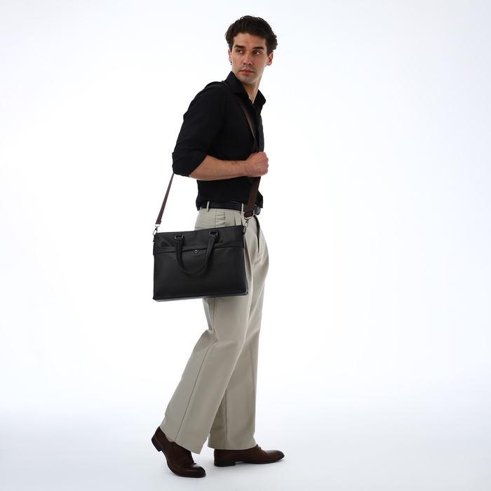 Сумка мужская деловая TEXTURA, 2 наружных кармана, цвет коричневый