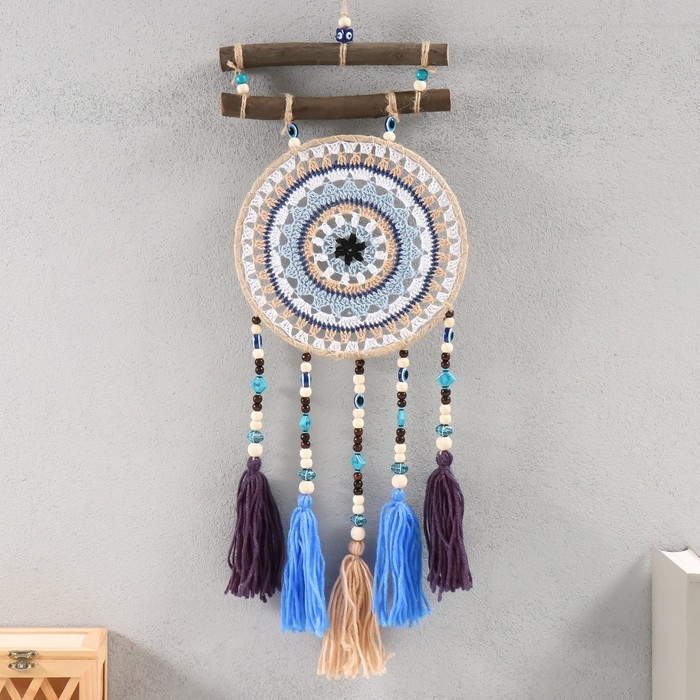 Ловец снов "Вязаные круги" холодные цвета 20х55 см