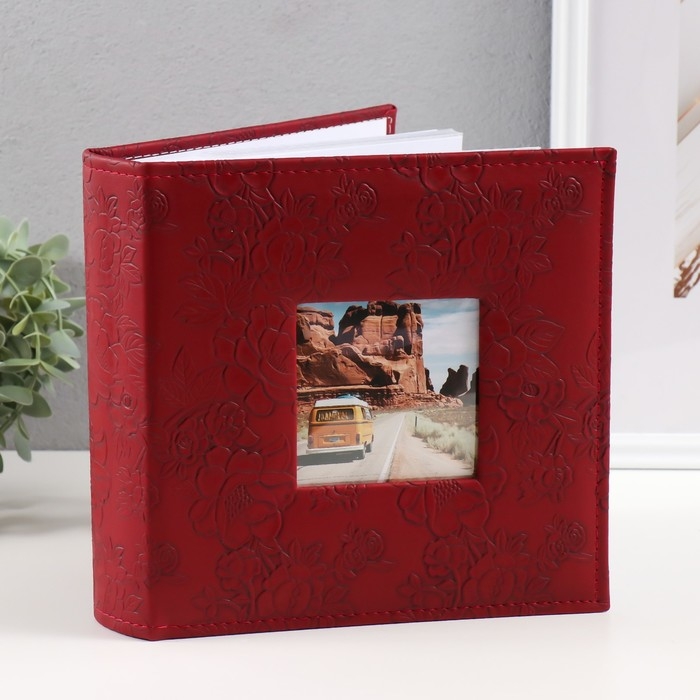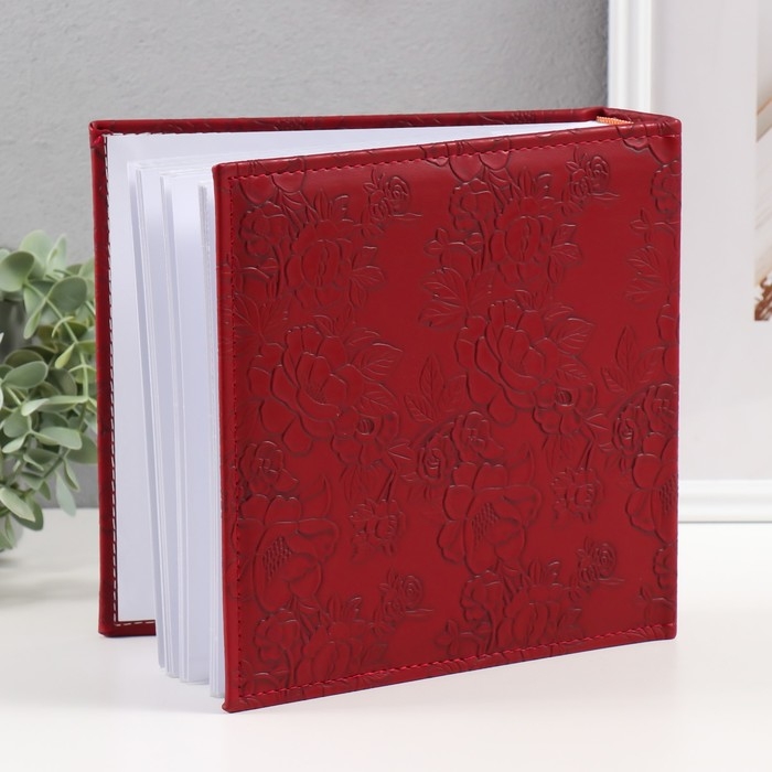 Фотоальбом на 200 фото 10х15 см кожзам "Цветочная текстура" бумажные листы бордовый 5х23х22 см 104