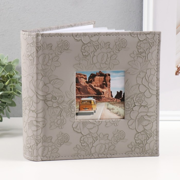 Фотоальбом на 200 фото 10х15 см кожзам "Цветочная текстура" бумажные листы серый 5х23х22 см 104996