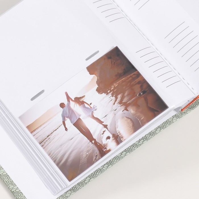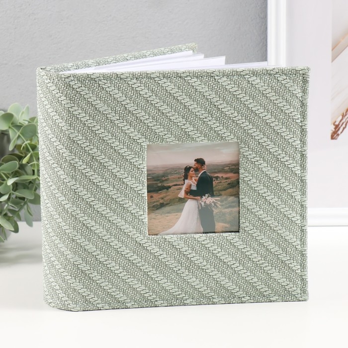 Фотоальбом на 200 фото 10х15 см кожзам "Багетная текстура" бумажные листы зелёный 5х23х22 см 10499