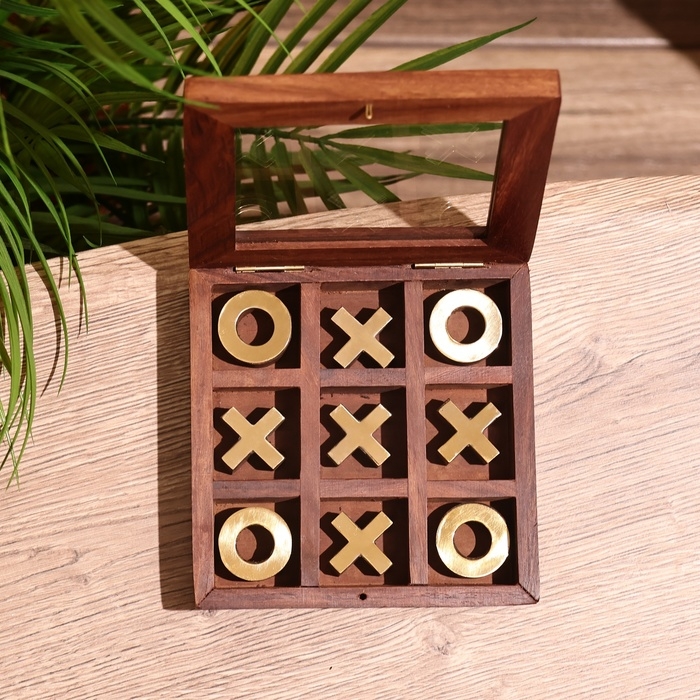 Игра настольная "Крестики-нолики" 13х13 см, манговое дерево, латунь