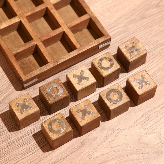 Игра настольная "Крестики-нолики" 17х17 см, манговое дерево, сталь