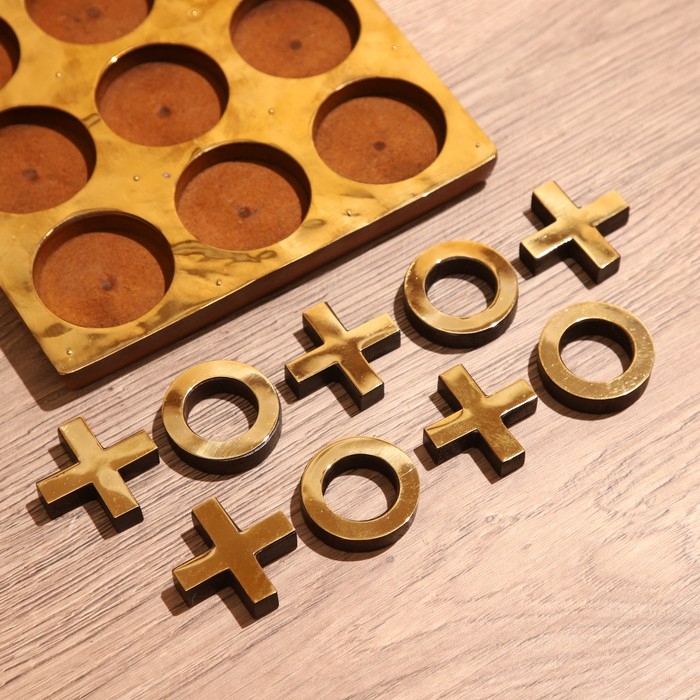 Игра настольная "Крестики-нолики" 18х18 см, манговое дерево, латунь