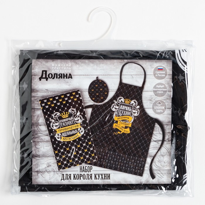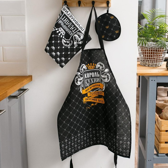 Кухонный набор 3 пр. "Король кухни" фартук 60х70 см, прихватка 20х20 см, полотенце 35х60 см