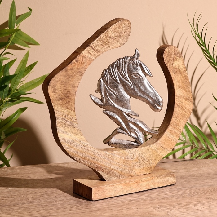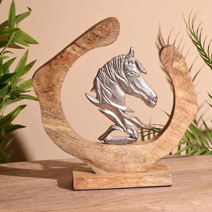 Сувенир интерьерный в деревянном кольце "Конь" 30х8х33 см