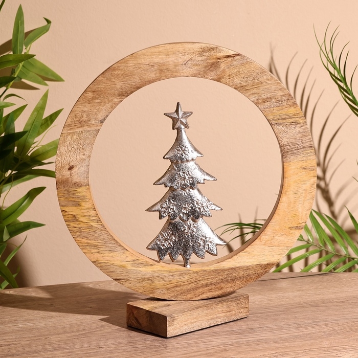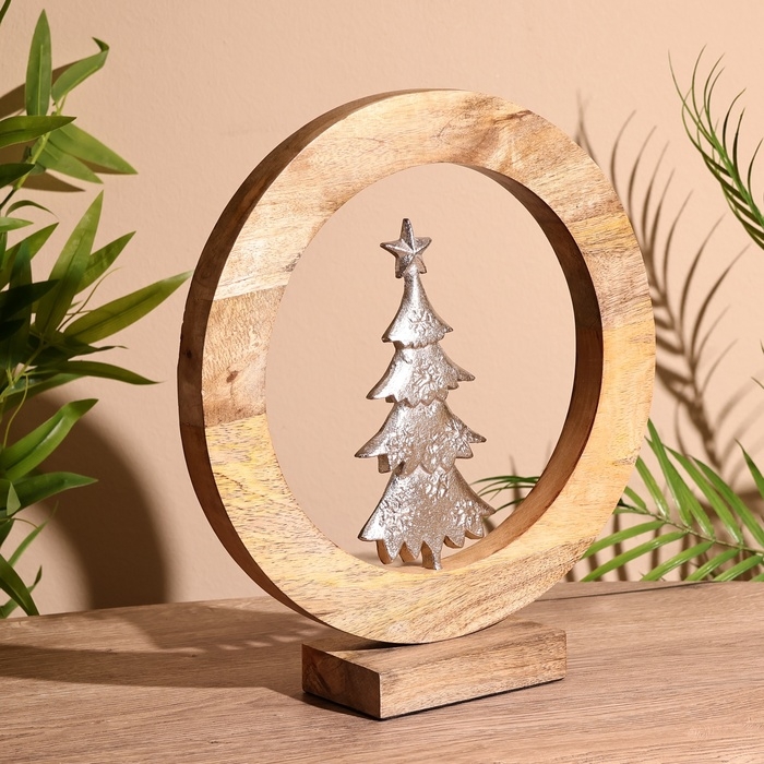 Сувенир интерьерный в деревянном кольце "Ёлка" 30х8х33 см