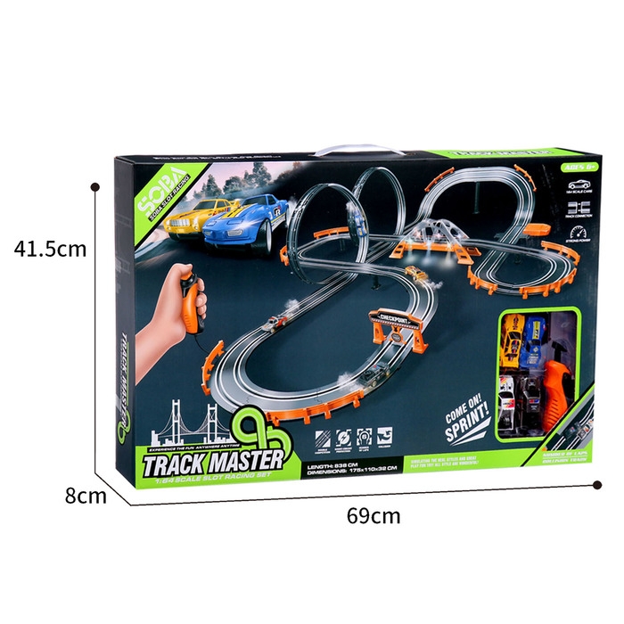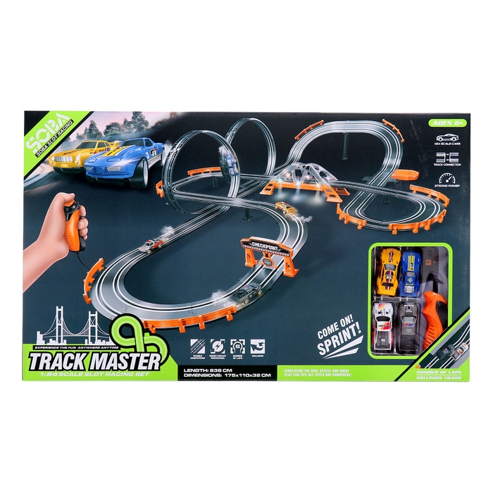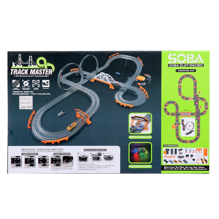 Автотрек «Турбо кросс», с 4 машинами работает от сети, длина трека 8,38 м.