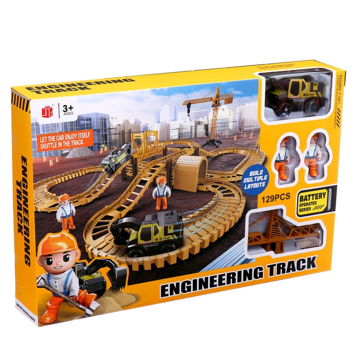 Автотрек «Стройка», с машинкой, краном и фигурками, работает от батареек