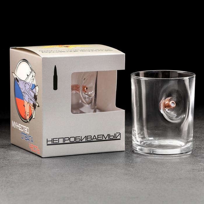 Стакан "Непробиваемый. ВКС", для виски, эмблема с пулей, 250 мл