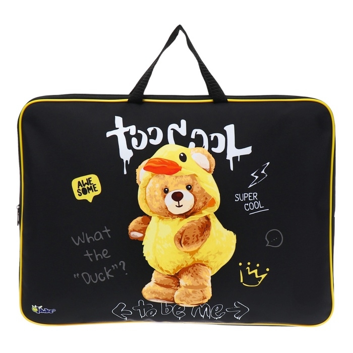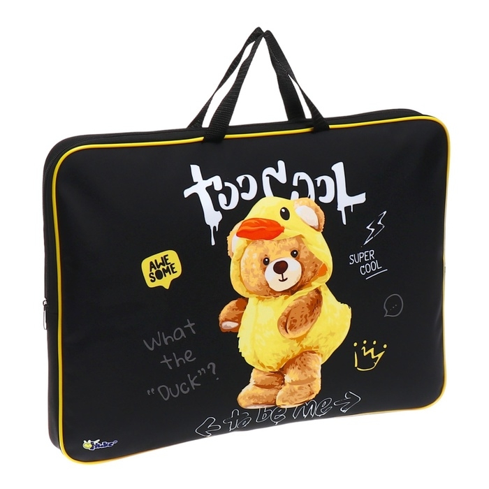 Папка для чертежей и рисунков А3, 475 х 345 х 45 мм, с ручками, текстиль, ПМД 3-20, "Мишка Кря"
