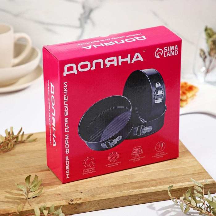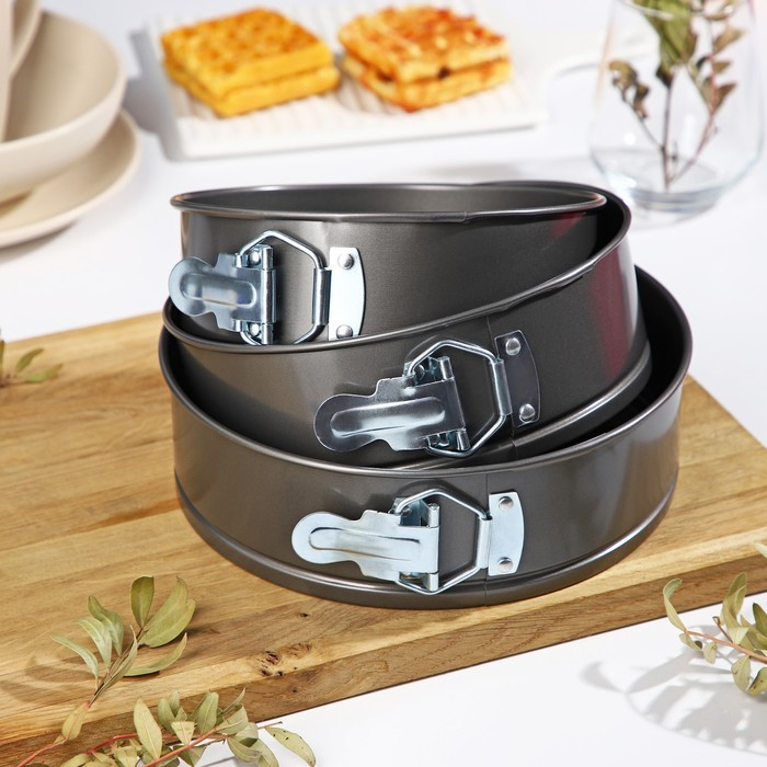 Набор форм для выпечки Доляна «Элин. Круг», 3 предмета: d=18/20/22х6,5 см, съёмное дно, антипригарное покрытие, цвет чёрный