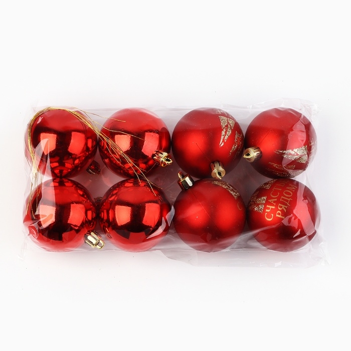 Шары ёлочные новогодние, на Новый год, d=6 см, 8 шт., цвет красный