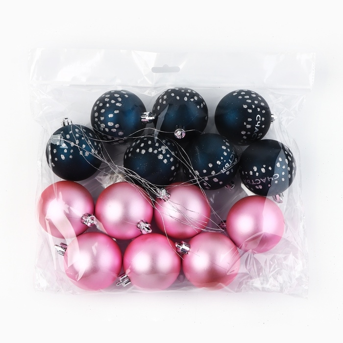 Шары ёлочные новогодние, на Новый год, d=6 см, 14 шт., цвет синий и розовый
