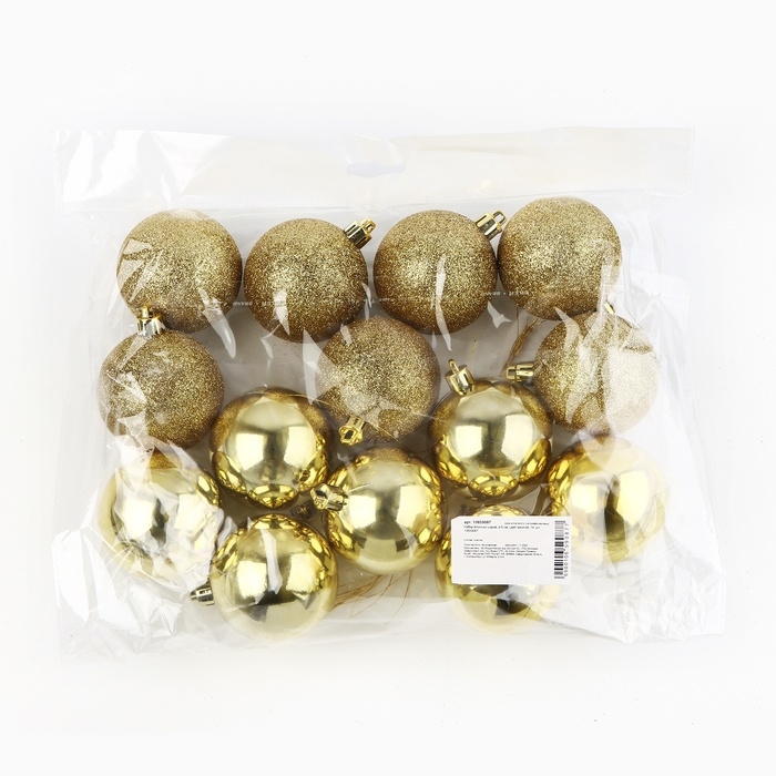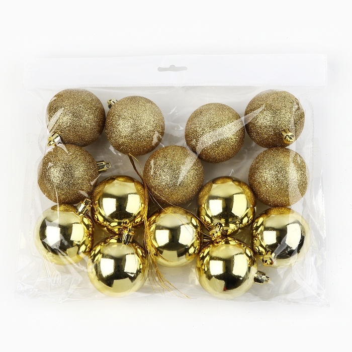 Шары ёлочные новогодние, на Новый год, d=6 см, 14 шт., цвет золотой