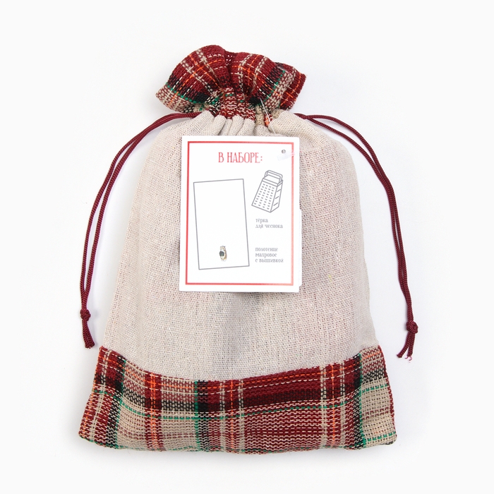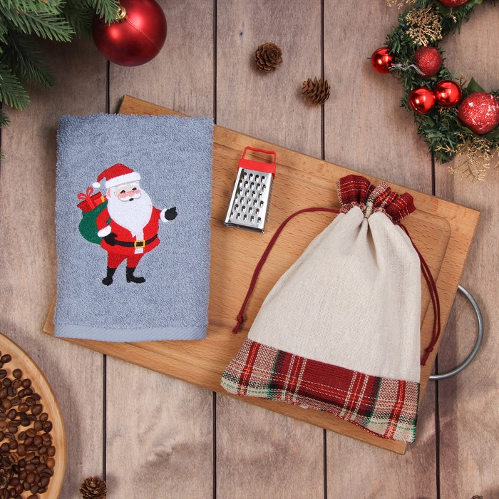 Набор в мешочке Этель "Дедушка Мороз": полотенце 35х60см, тёрка 7,7х3,7х3см