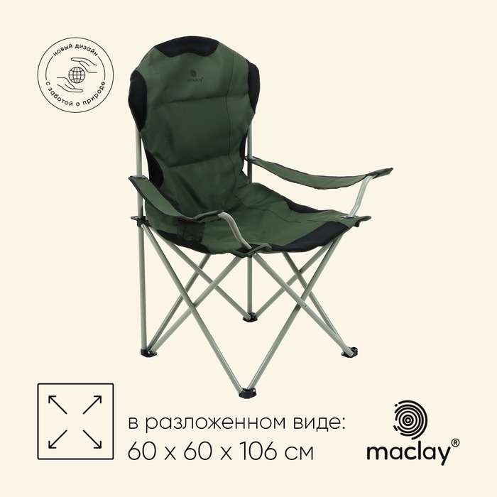 Кресло складное с подстаканником, 60 х 60 х 106 см, до 120 кг, цвет зелёный