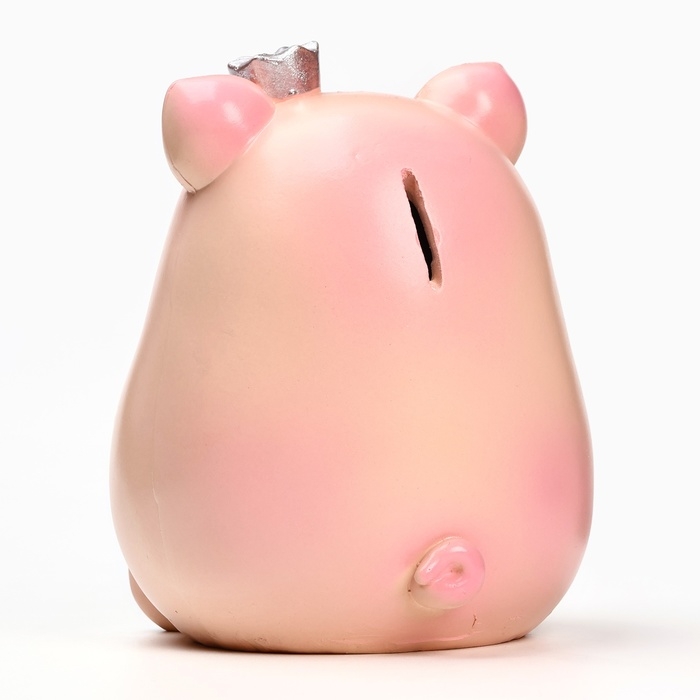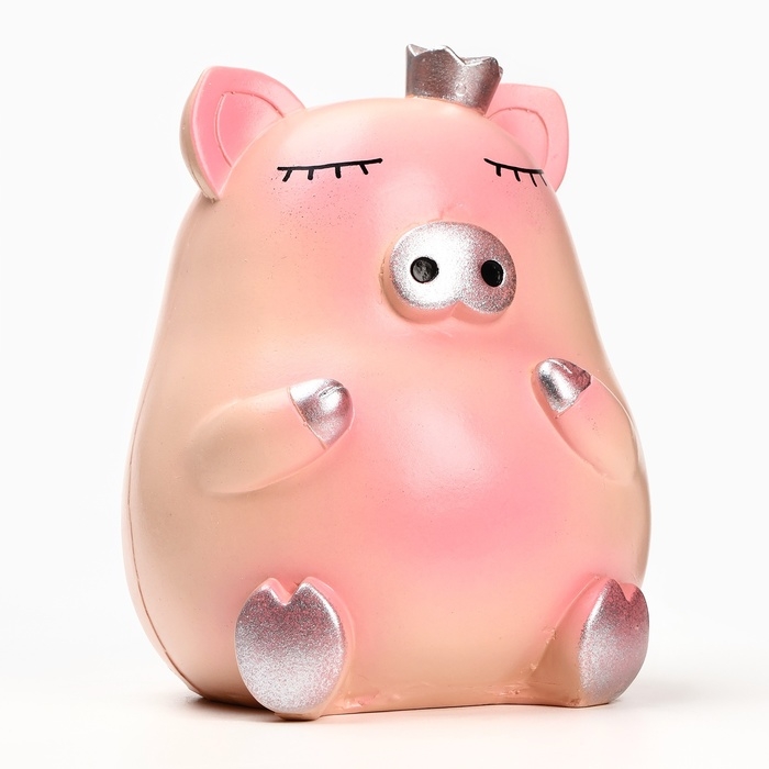 Копилка "Свинка с короной" розовая-серебро, 17см