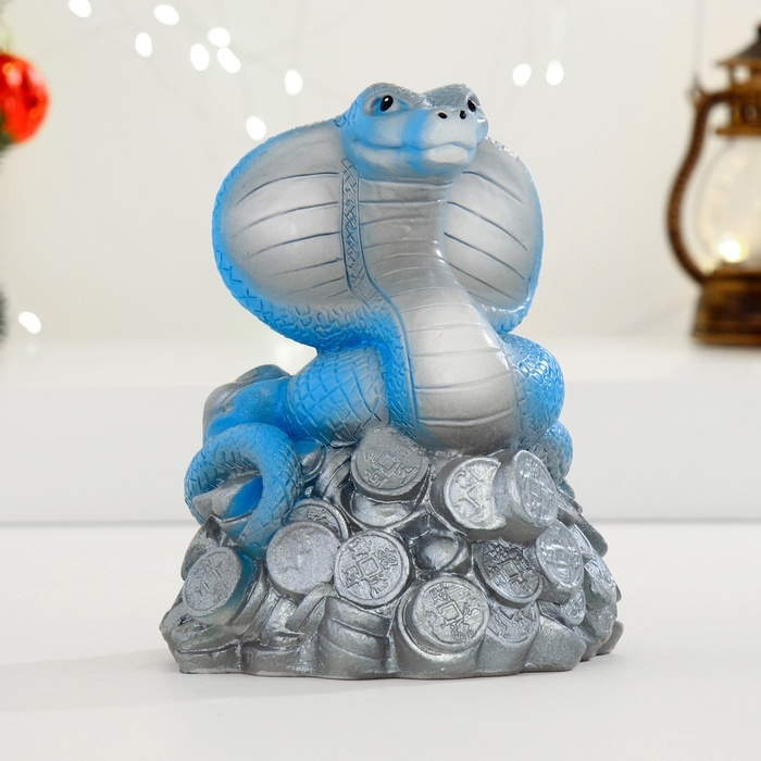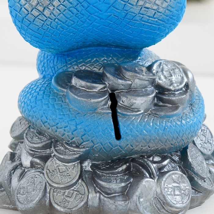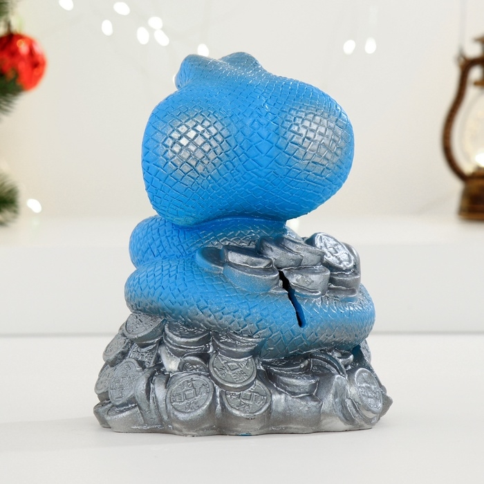 Копилка "Змея на деньгах" голубая, 16см