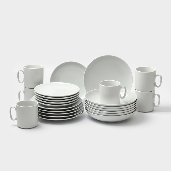 Набор фарфоровой посуды «Классический», 24 предмета: тарелка плоская d=17,5 см, d=20 см, тарелка глубокая 600 мл, d=20 см, кружка 300 мл