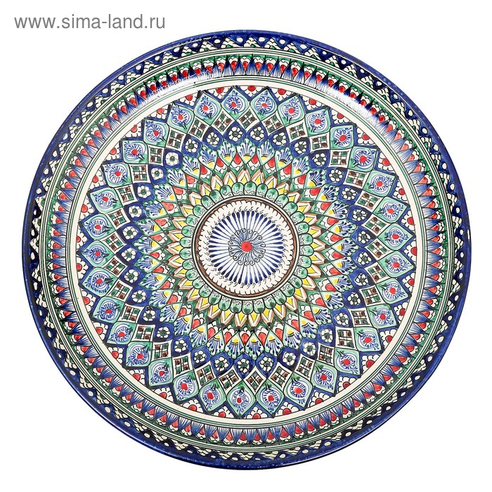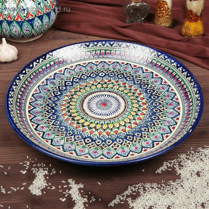 Ляган Риштанская Керамика "Узоры", 37 см, синий