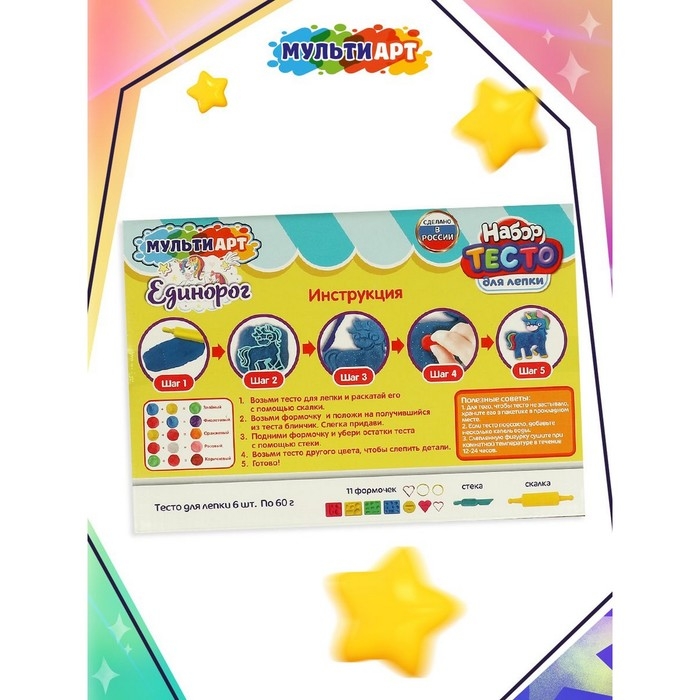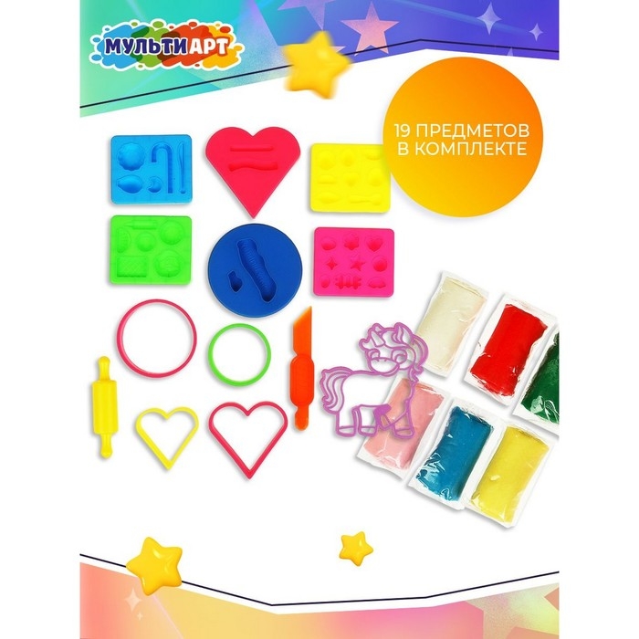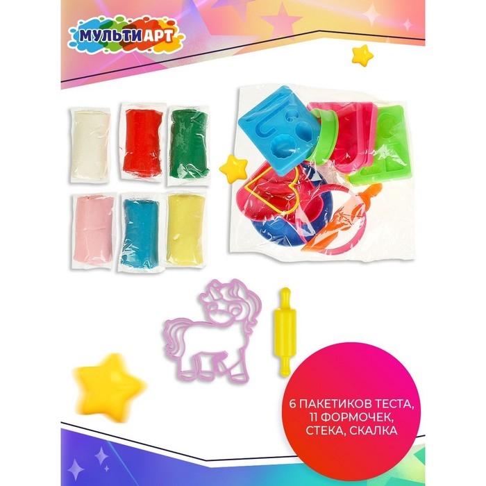 Тесто для лепки «Единорог», 6 цветов, 11 формочек