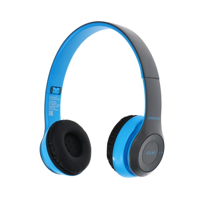 Наушники ERGOLUX ELX-BTHP01-C06, беспроводные, накладные, микрофон, 250мАч, FM, синие