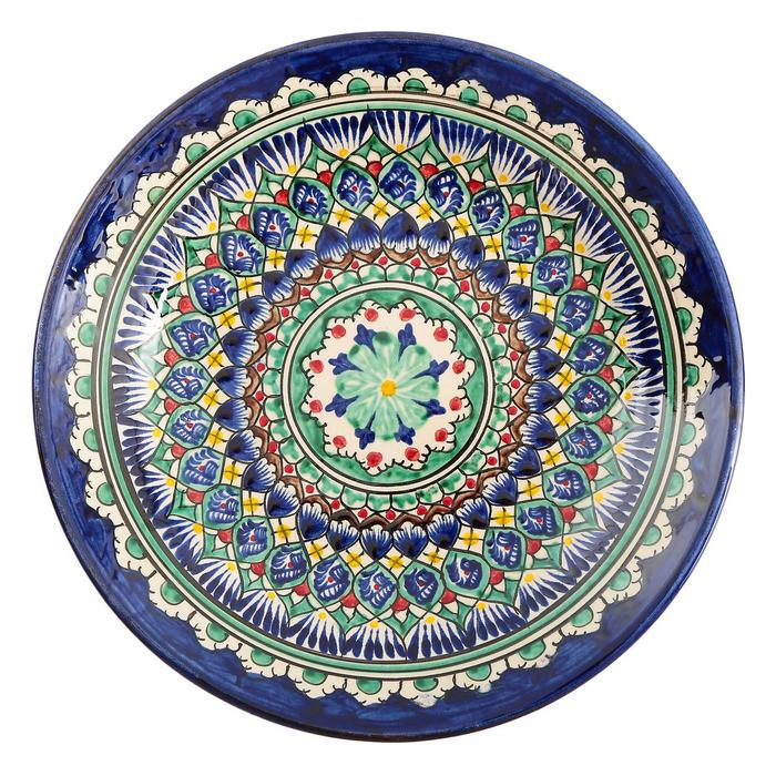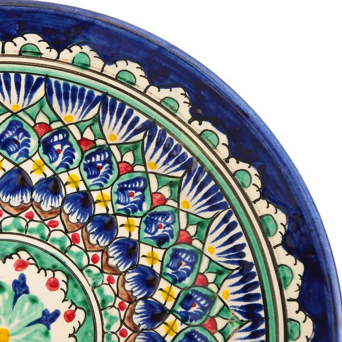 Тарелка Риштанская Керамика "Цветы", 22 см, синяя