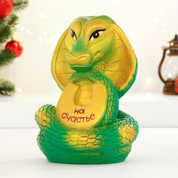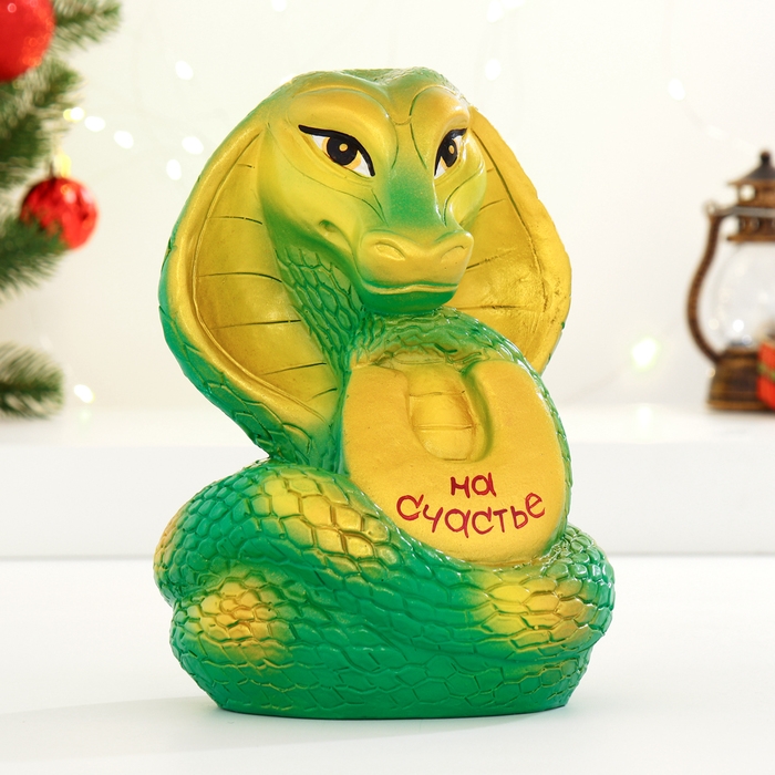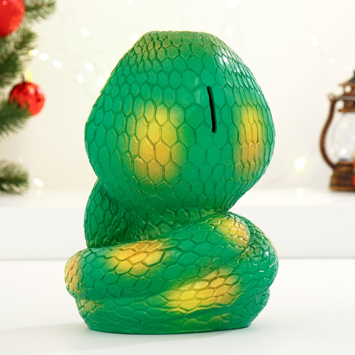 Копилка "Змея с подковой" зеленая, 21см