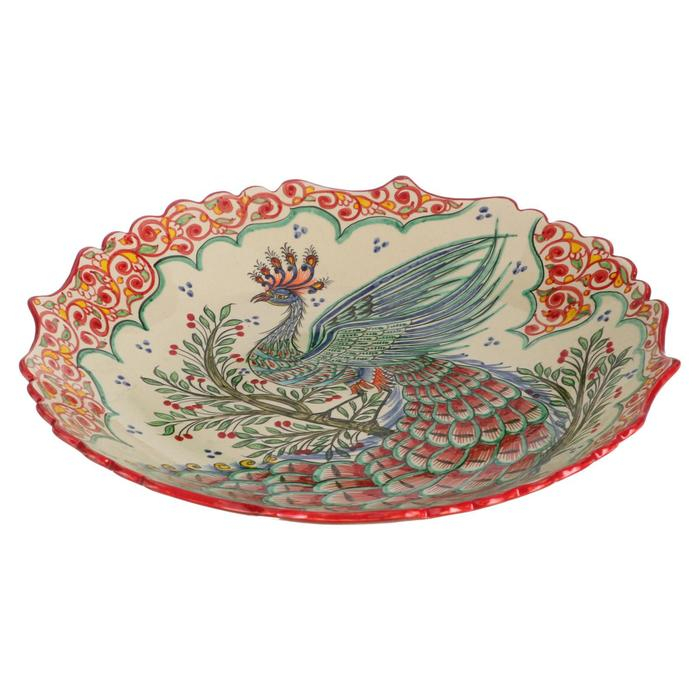Ляган Риштанская Керамика "Жар птица", 41 см, рифлённый