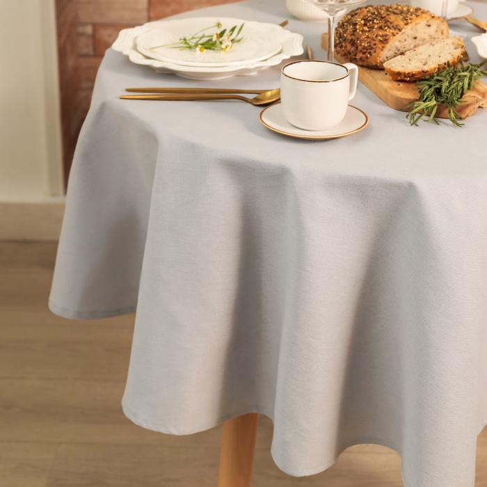 Скатерть Этель Kitchen круглая 146см +/-2см, цв. светло-серый, 100% хл, саржа 250 г/м2