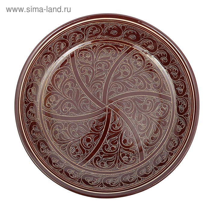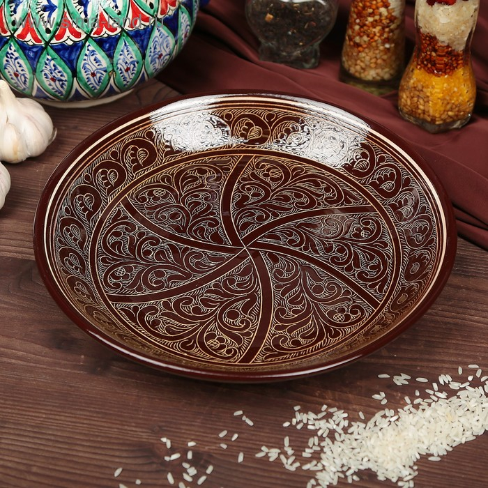 Ляган Риштанская Керамика "Узоры", 25 см, коричневый