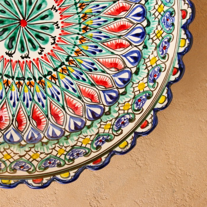Ляган Риштанская Керамика "Цветы", 32 см, синий, рифлёный, глубокий