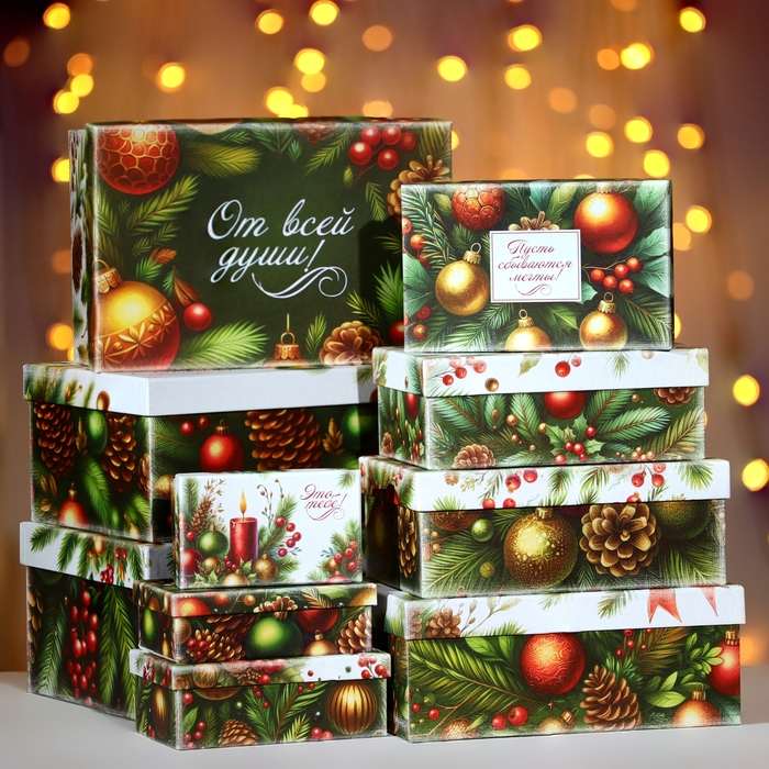 Набор новогодних коробок «10 в 1» — идеальное решение для тех, кто хочет порадовать близких оригинальными подарками.