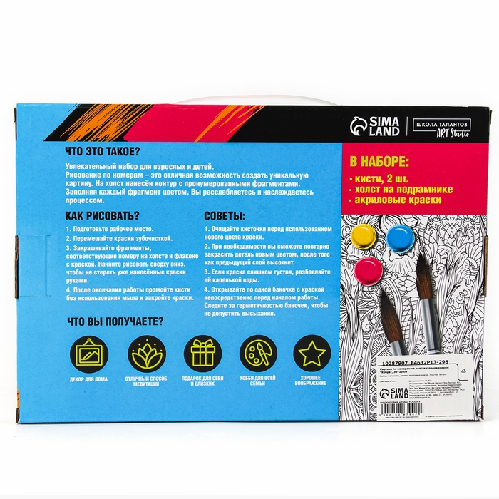 Картина по номерам - это холст, который разделён на множество мелких фрагментов, на каждом из которых указано число, соответствующее цвету, которым нужно закрасить данный участок. Простота и удобство в использовании делают этот набор идеальным выбором для всех, кто хочет попробовать себя в живописи.