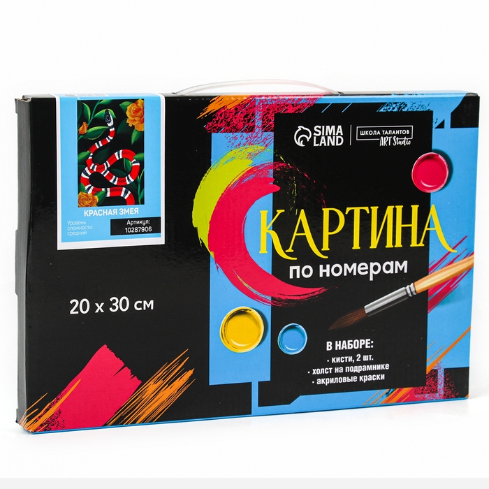 Картина по номерам на холсте с подрамником на новый год «Красная змея», 30 х 20 см, символ года 2025, новогодний набор для творчества