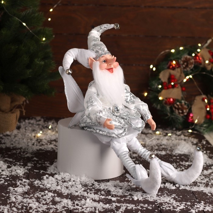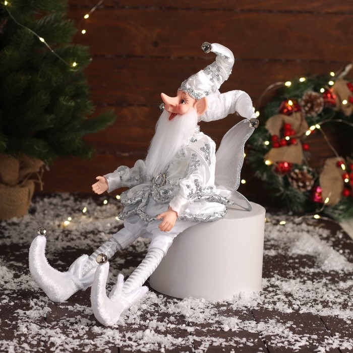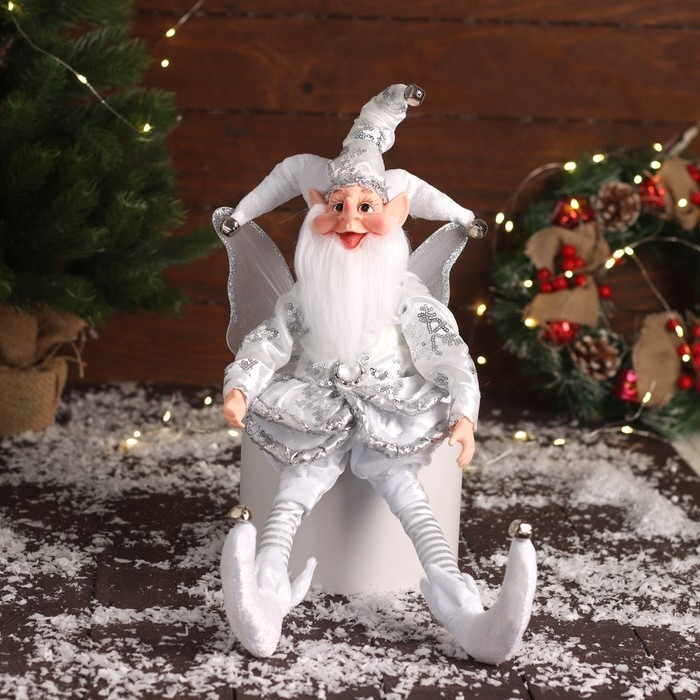 Новогодний шут "С крылышками" сидит, двигается, 39х14 см, серебро