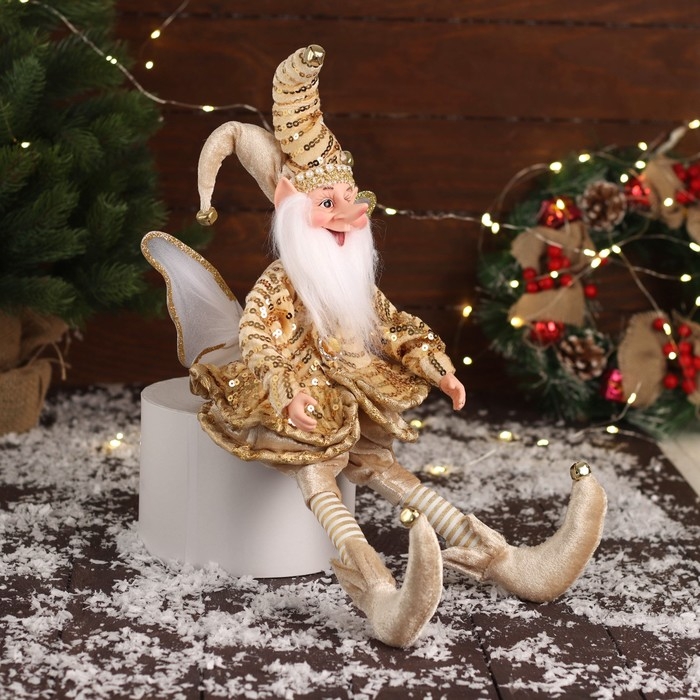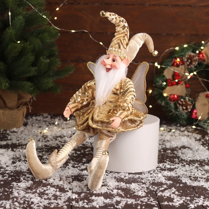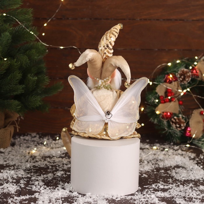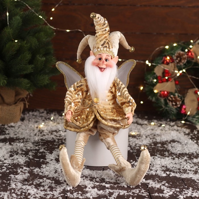 Новогодний шут "С крылышками" сидит, двигается, 39х14 см, золото
