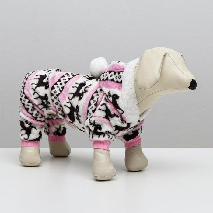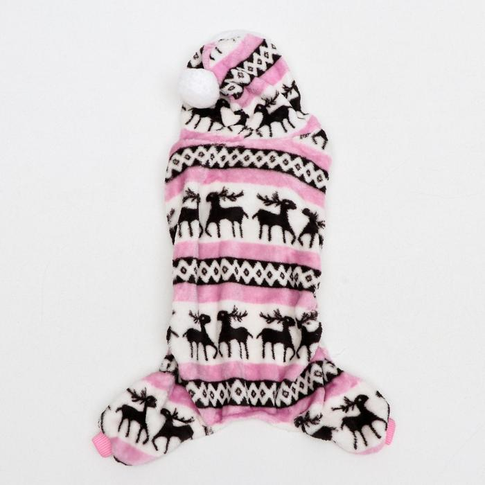 Комбинезон "Олени" с капюшоном, размер S (ДС 25 см, ОГ 35 см, ОШ 25 см), розовый
