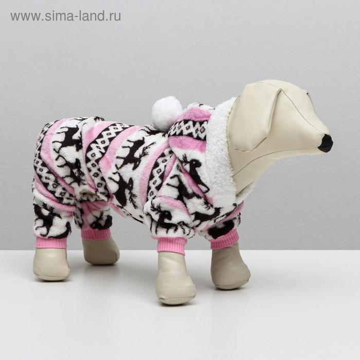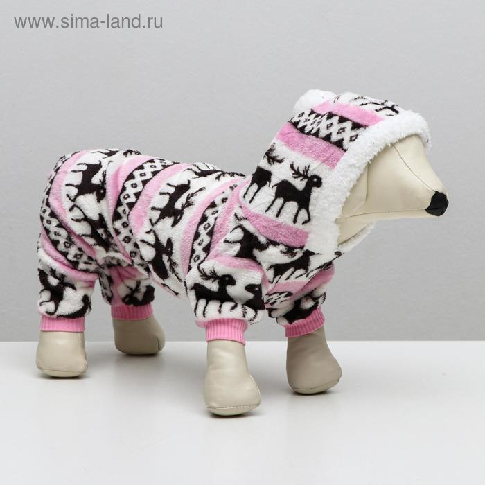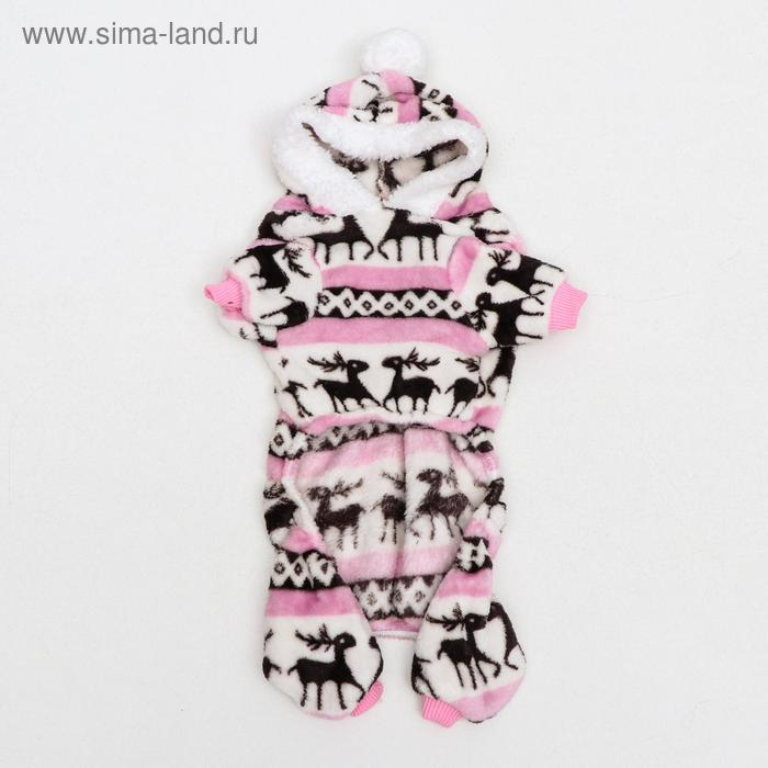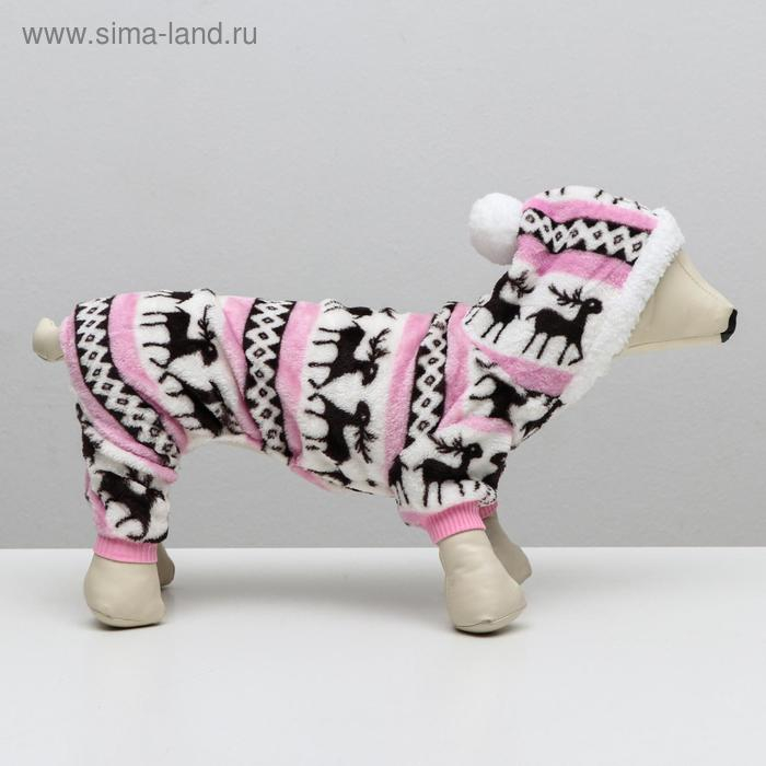 Комбинезон "Олени" с капюшоном, размер M (ДС 30 см, ОГ 40 см, ОШ 30 см), розовый