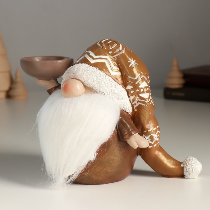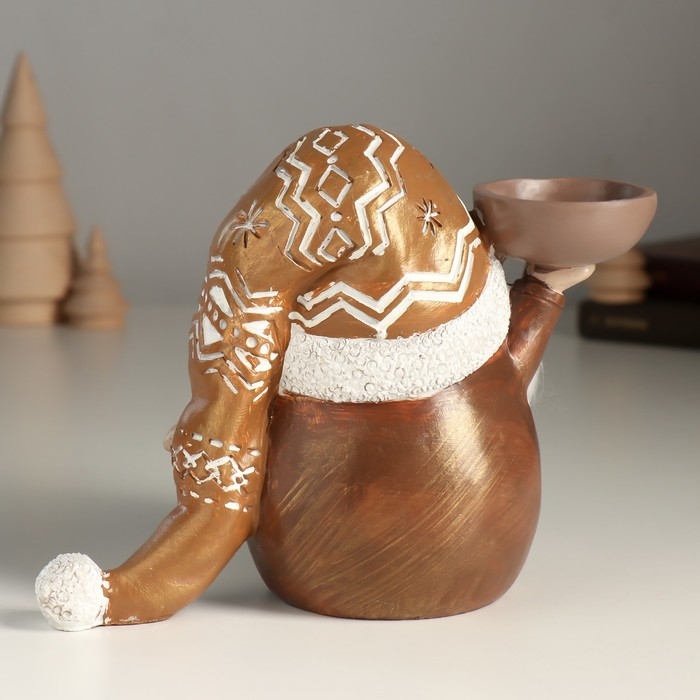 Подсвечник полистоун на 1 свечу "Дед Мороз в золотом колпаке с узорами" 18х9,5х13 см