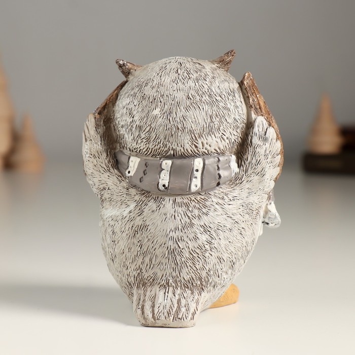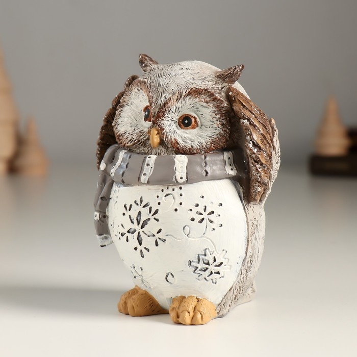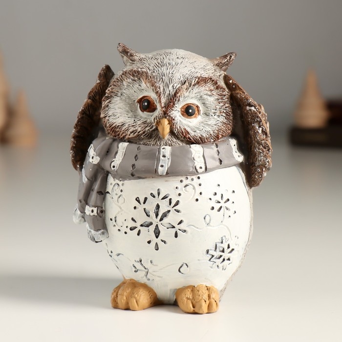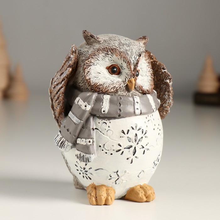 Сувенир полистоун "Филин в серо-белом шарфике" 8,5х7х10,5 см