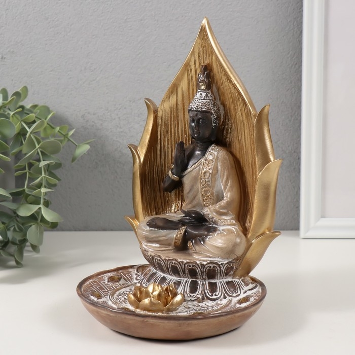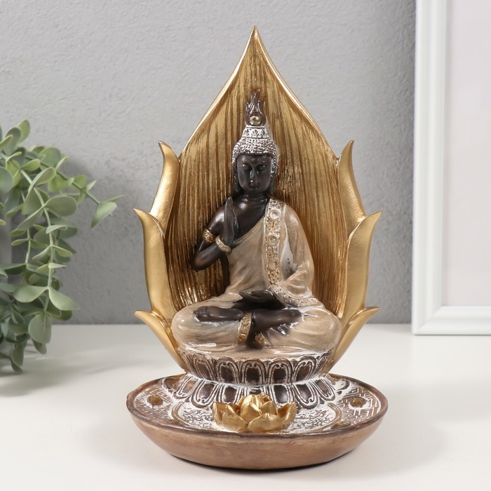 Подставка под благовония "Будда и золотой лотос" корица и золото 37х6х30 см