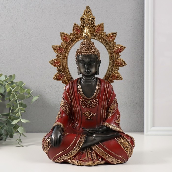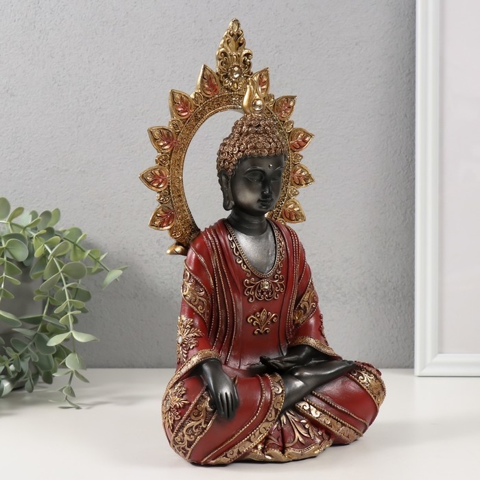 Сувенир полистоун "Будда в красном одеянии, с золотыми узорами" 17х11х28,5 см