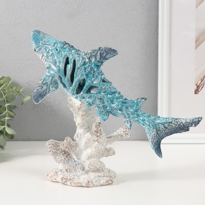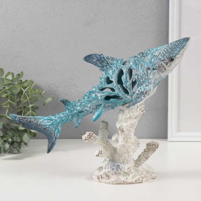 Сувенир полистоун "Коралловый риф. Акула на подставке" 29х14,5х20,5 см