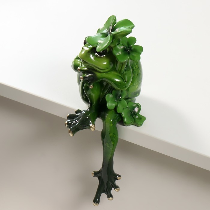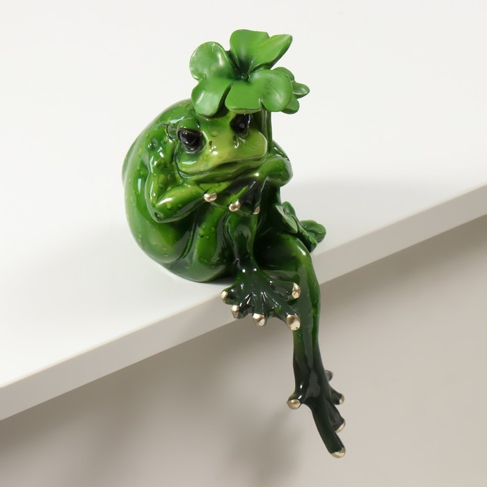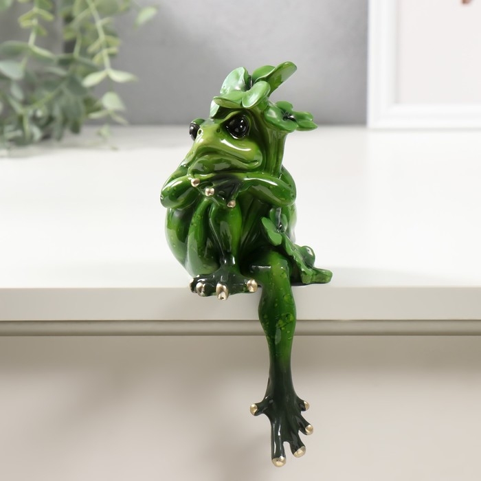Сувенир полистоун лак на полку "Лягушонок думает" 11х9х21 см