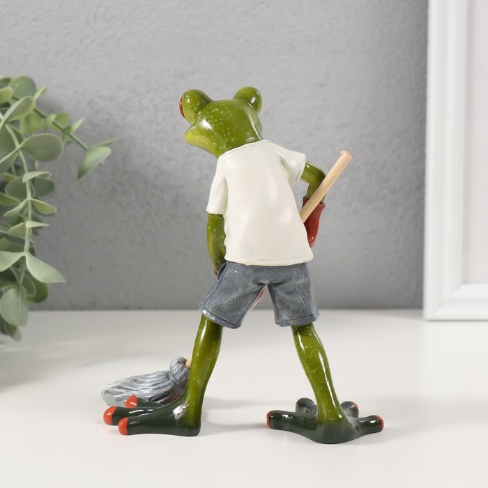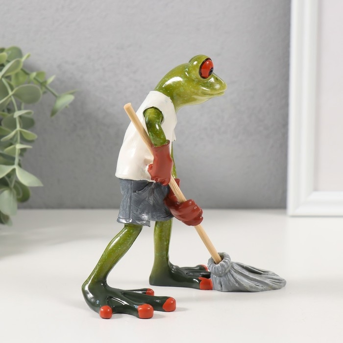 Сувенир полистоун лак "Лягушонок с шваброй" 13х7,5х14 см