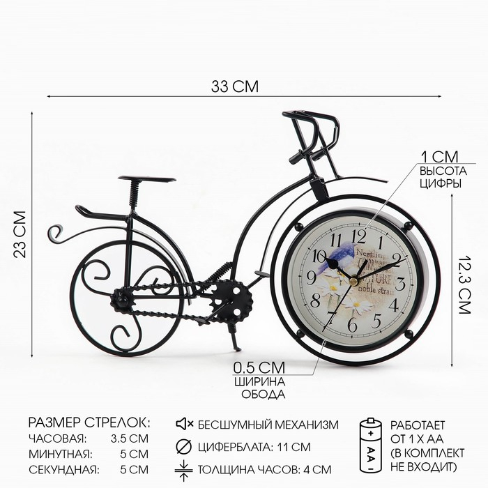 Часы настольные фигурные "Велосипед ретро", бесшумные, циферблат d-11 см, 23 х 33 см